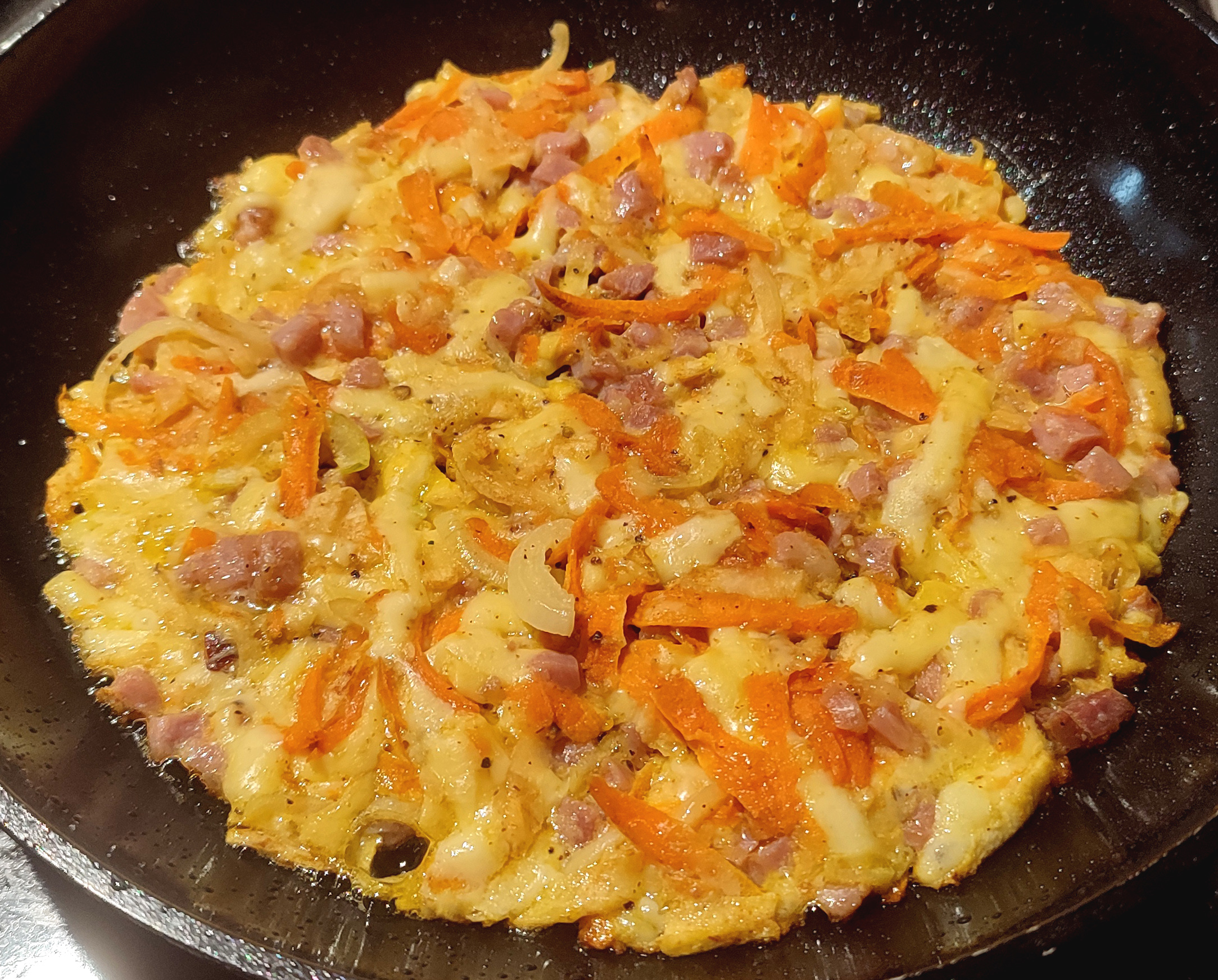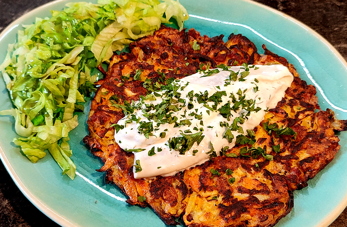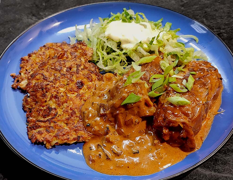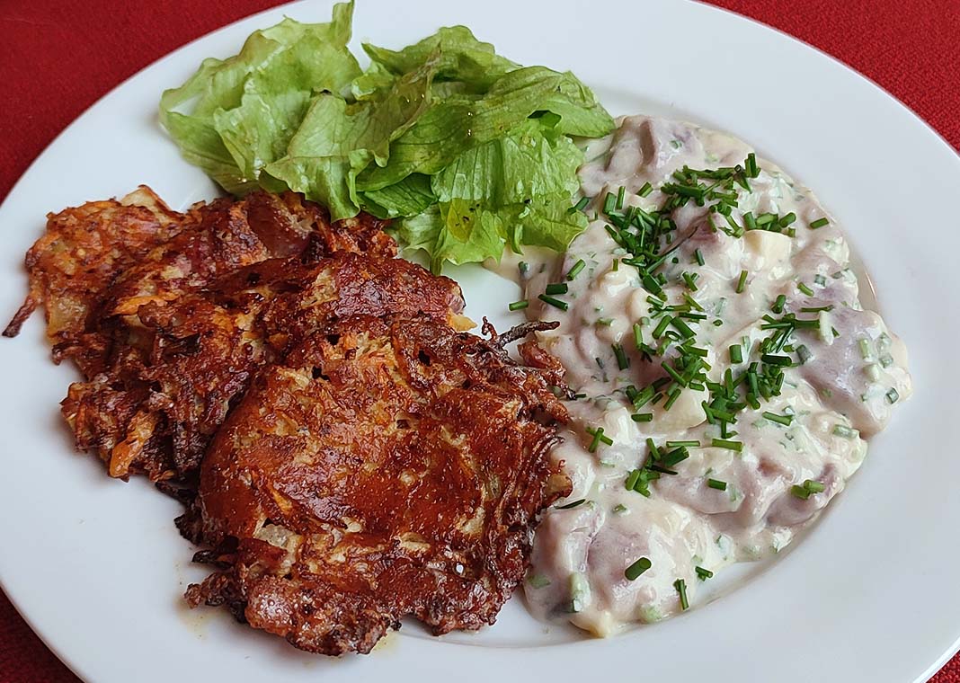Röstiteig hatte ich noch in der tiefen Kühle, reichte aber nicht ganz und wurde verlängert.