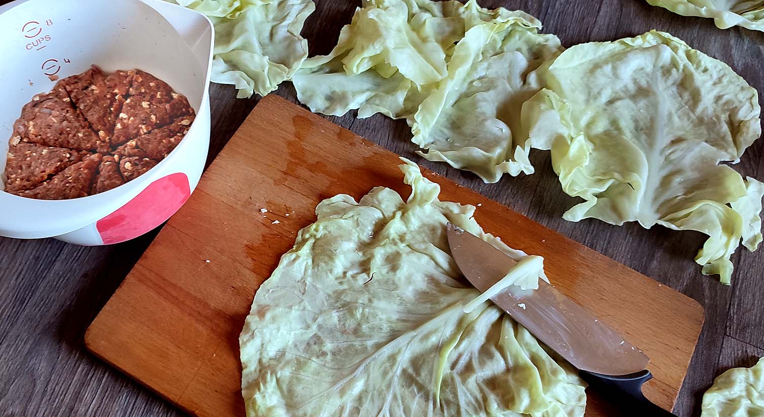 in grobe Stücke schneiden, mit