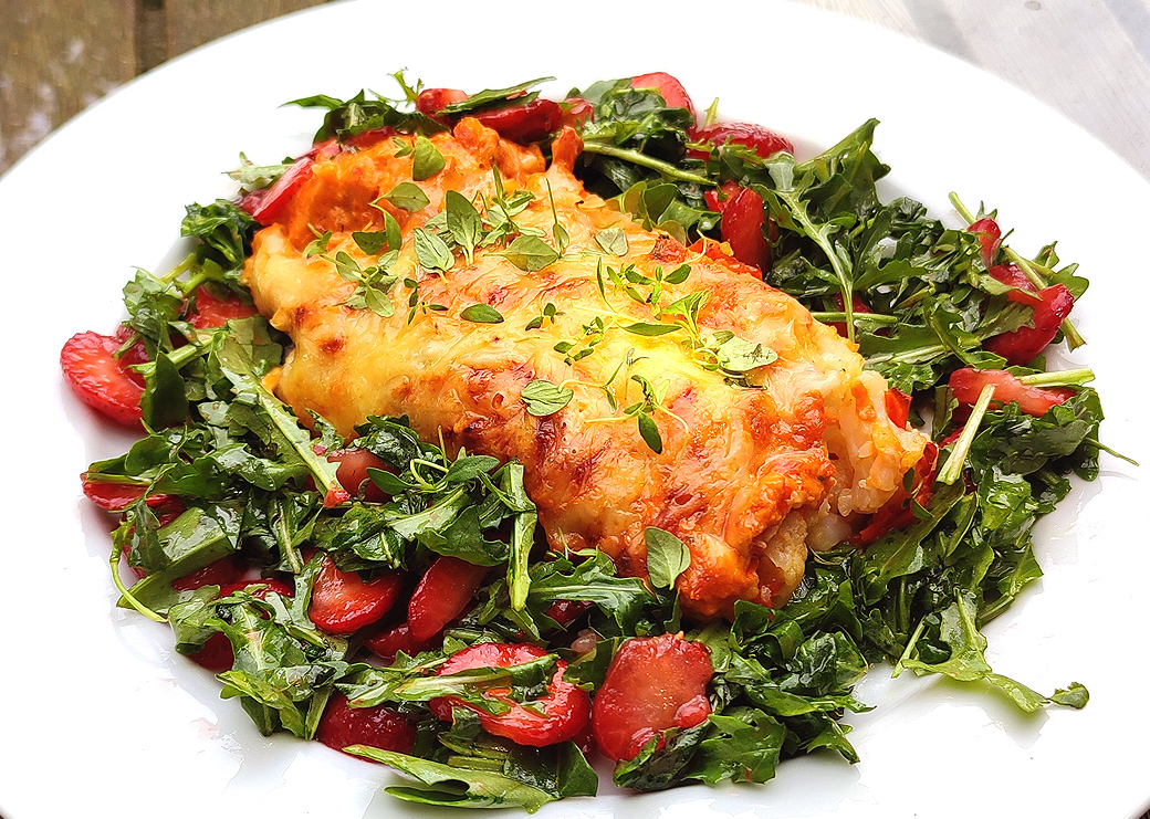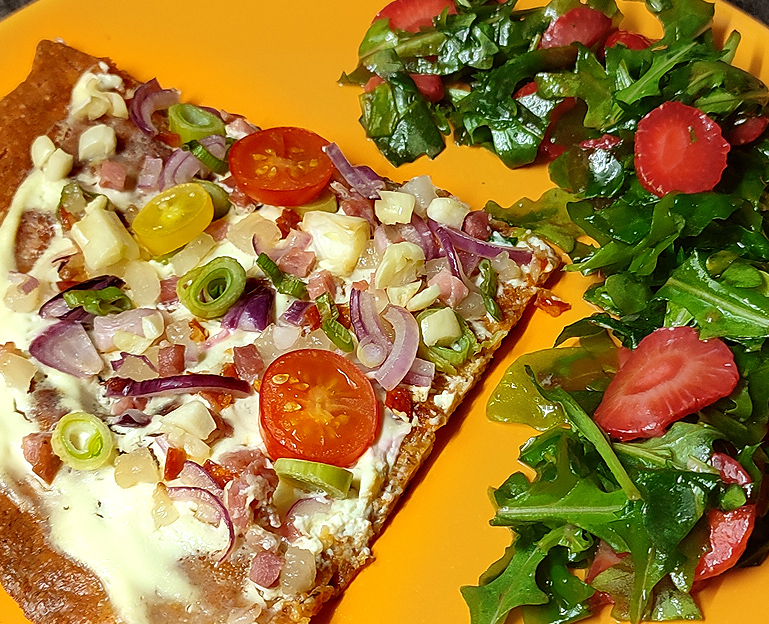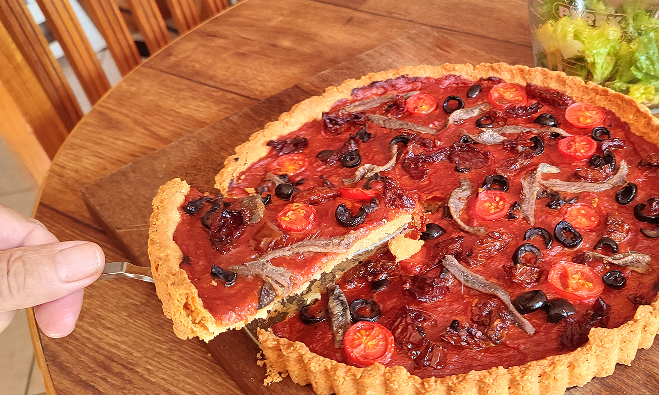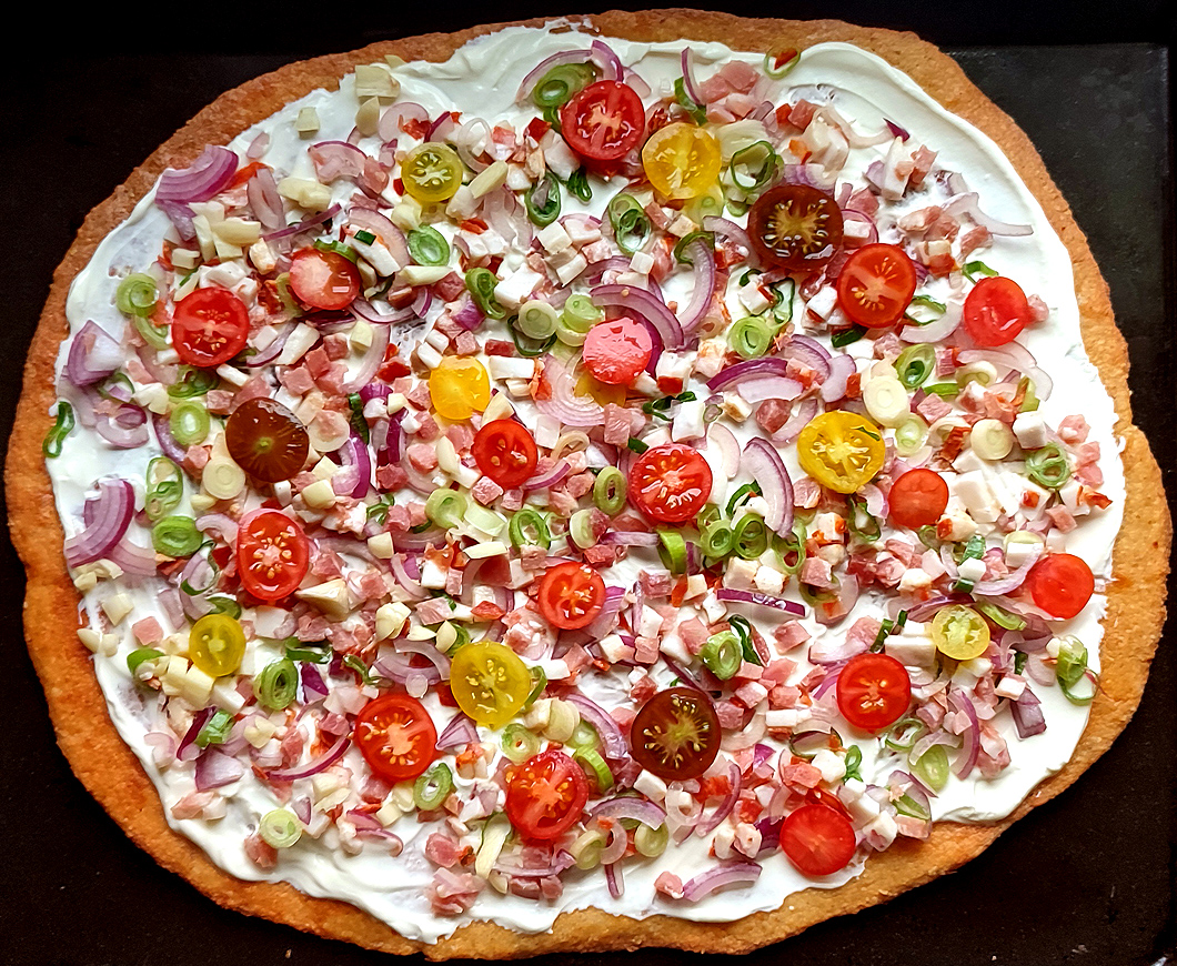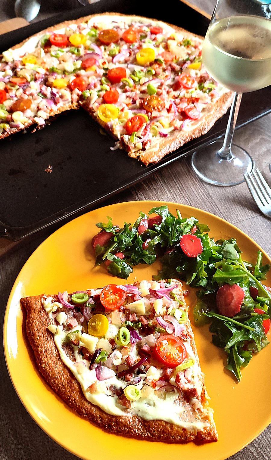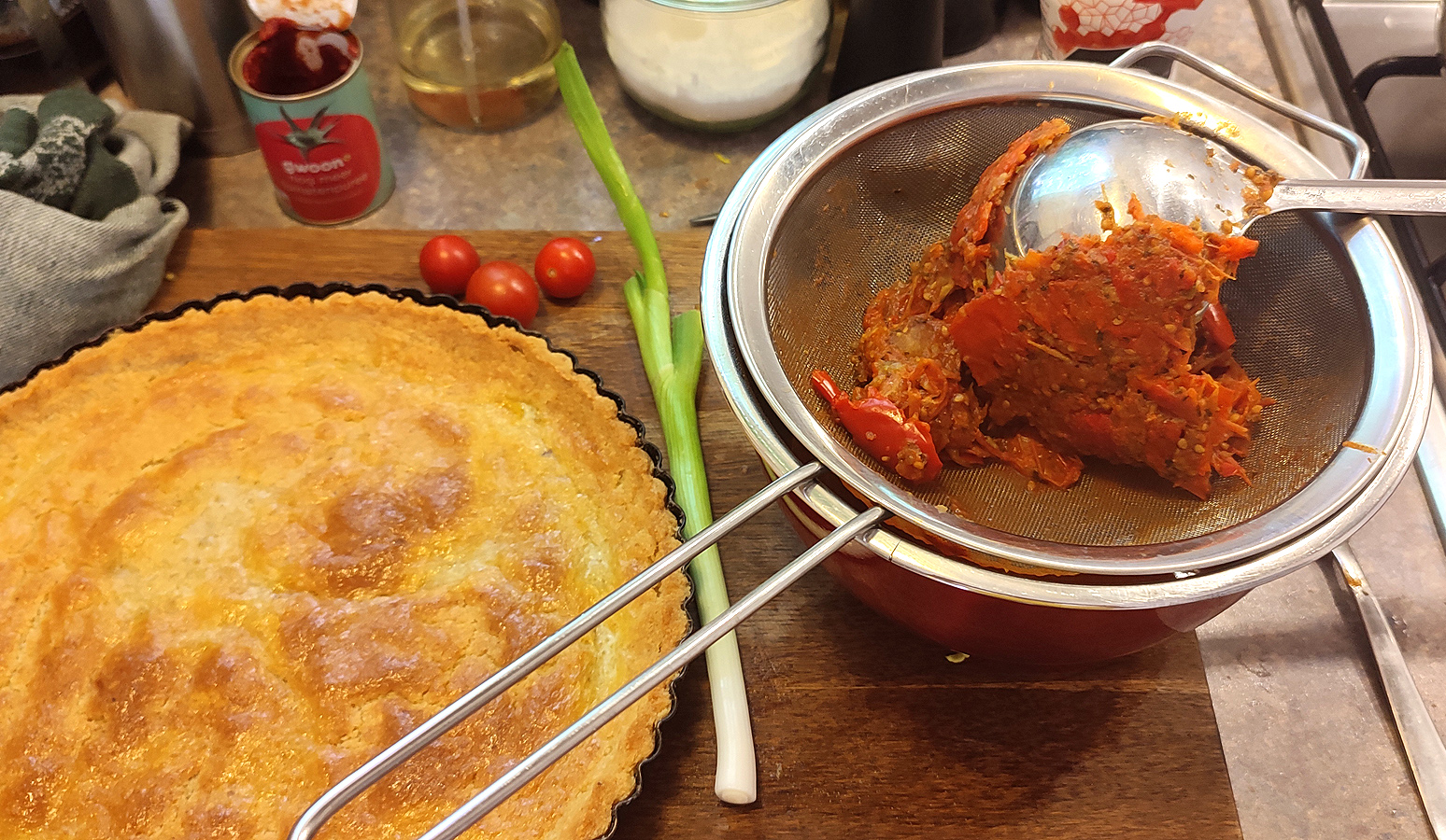 Nachher kommen die Gäste und ich freue mich, ihnen mein Keto-Signature-Dish servieren zu können. Das ist bestens geeignet, denn es ist alles schon vorbereitet. Kommen die Gäste an, schiebe ich die Tarte flugs in den Ofen und kann die Vorspeise nach einer halben Stunde, in der ich mich ganz den Gästen widme, frisch und heiß servieren.