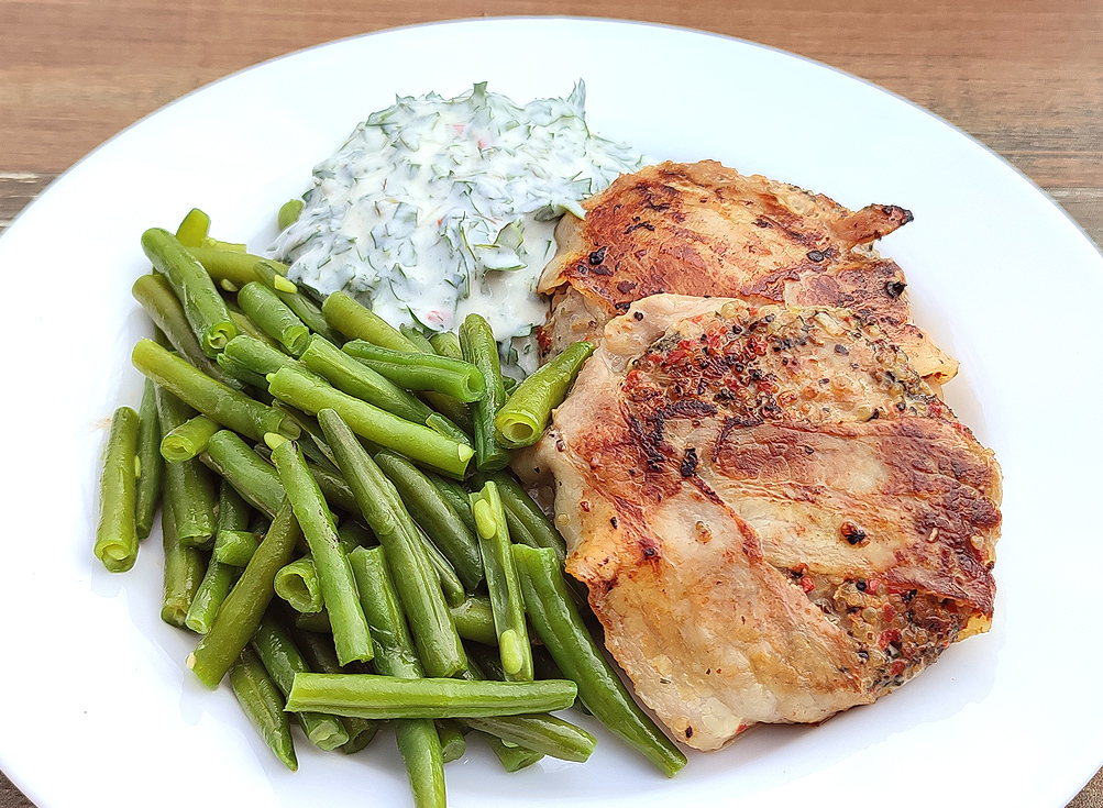 Es muss ja immer um 14:00 Uhr fertig sein, unser Mittagsessen, und manchmal wird das dann verdammt eng. Nein, da steckt nicht der Import dahinter, ich selber mache mir gerne den Stress, pünktlich fertig zu werden. Und da es heute feines Dining geben sollte und deshalb sogar die Strünke von den Spinatblättern gezupft wurden (was exakt eine Viertelstunde in Anspruch nahm), ging es sich hinten nicht aus (-:
