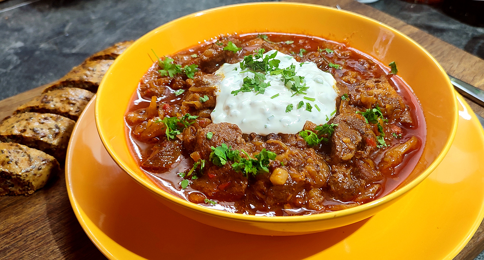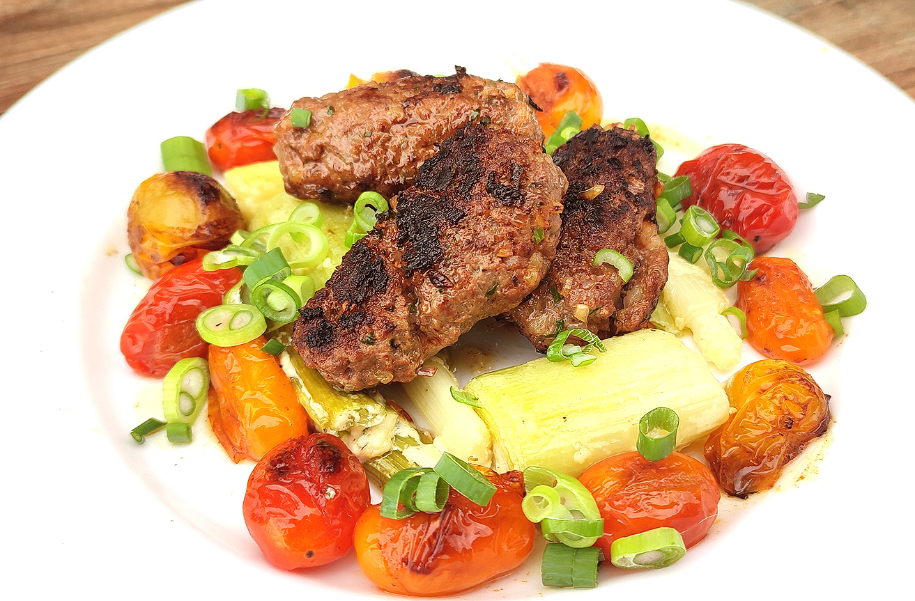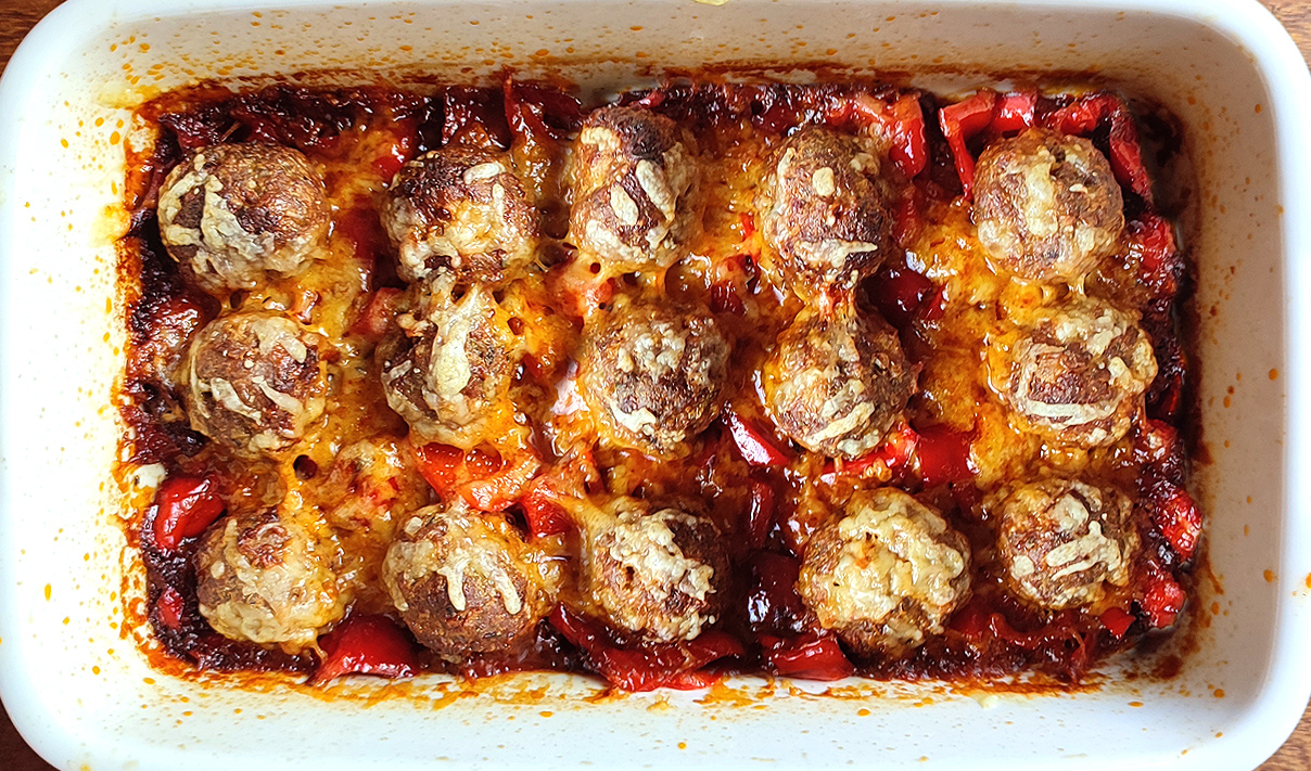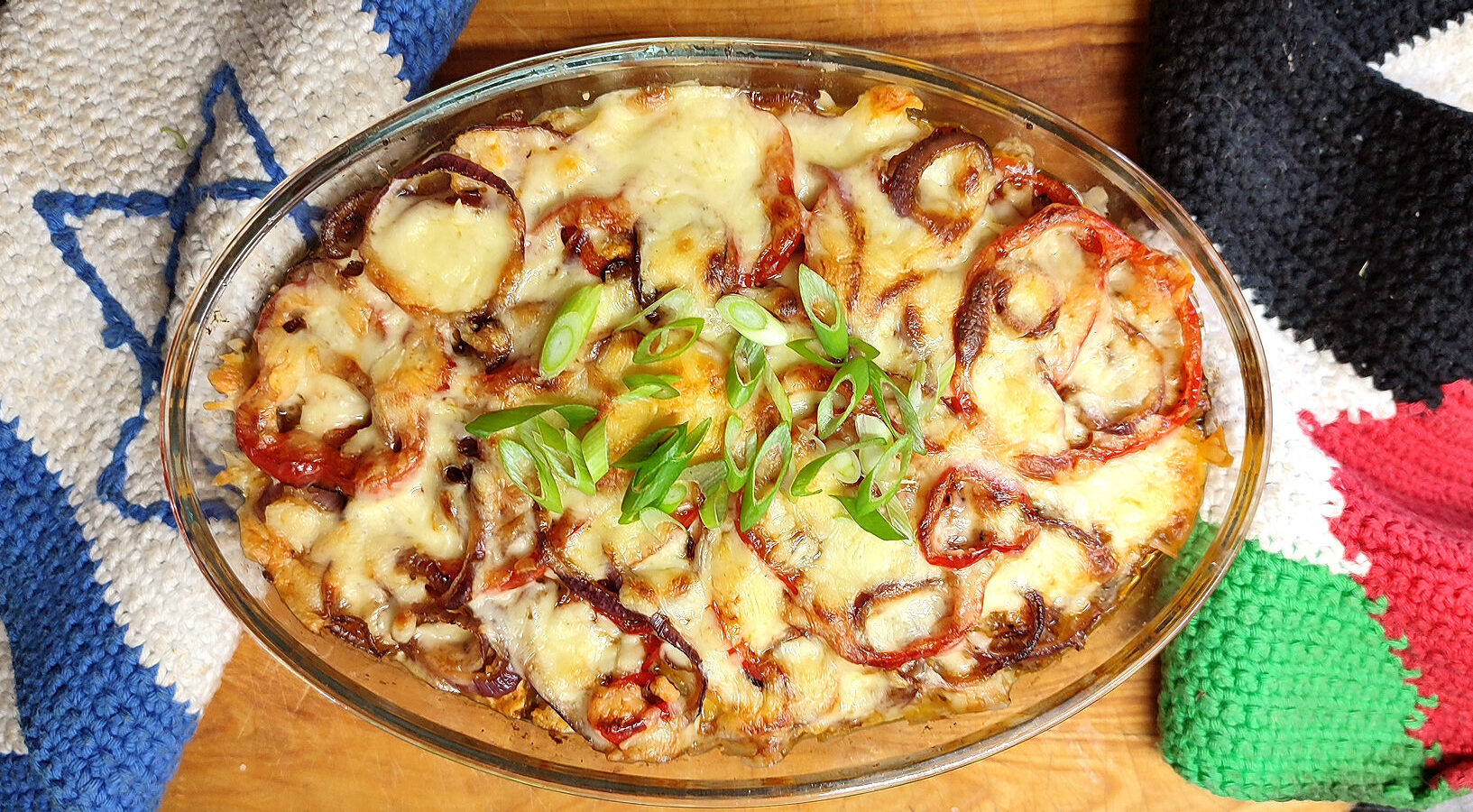 Wie fertig? Ich komme da in Schwierigkeiten, denn das ist nicht meine Koche und ich muss zweimal nachfragen: „Wie jetzt, das Hack nicht anbraten … die Paprika roh … nichemal Zwiebeln?“