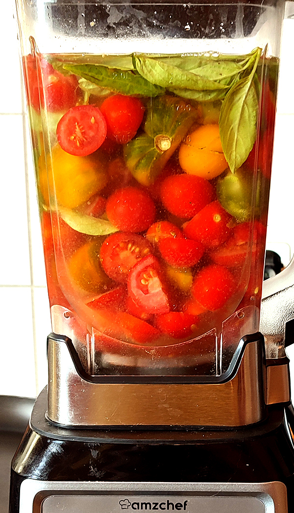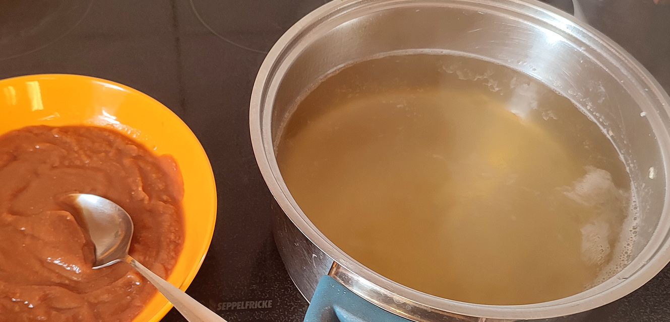 Ein wenig Zeit sollte man der roten Sauce geben, also fange ich mit der an.