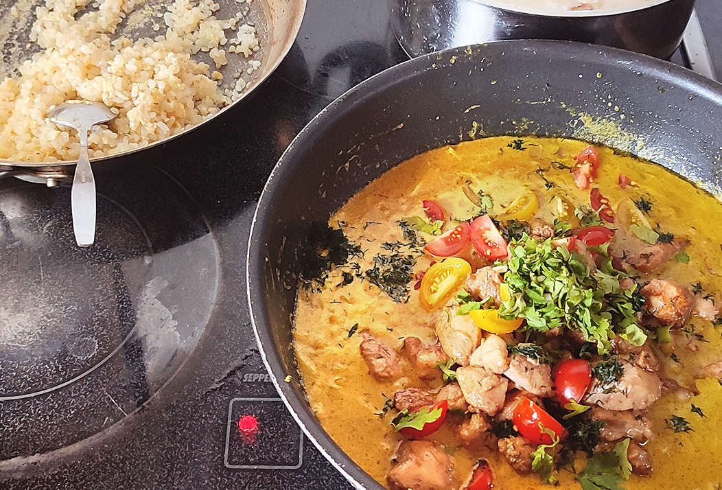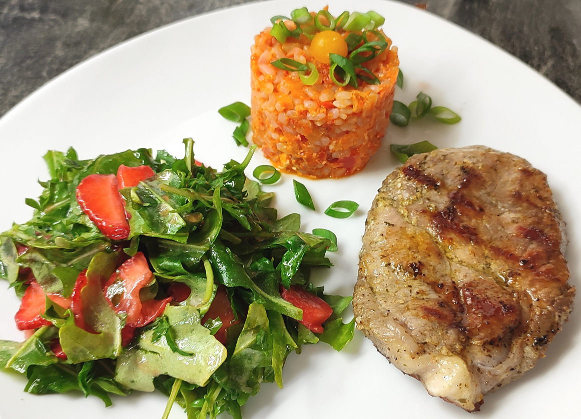 20 Minuten dürfen sie noch im Ofen backen, Zeit für Reis und Salat.