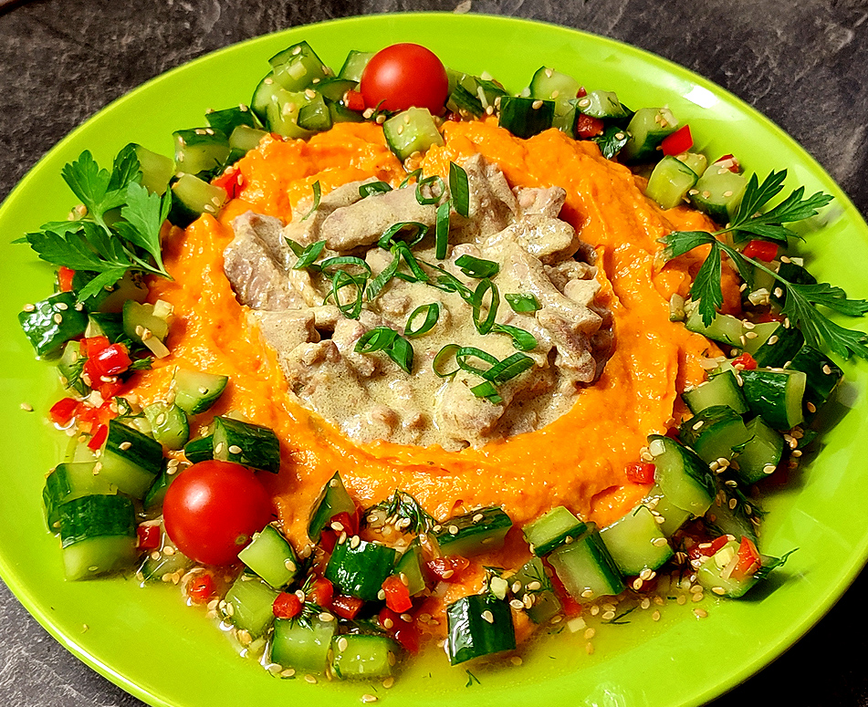 Abgeschmeckt habe ich das Tatar (was im Grunde ja keines ist) mit gehackter Petersilie, Zitronensaft, Salz und Knoblauchpfeffer.