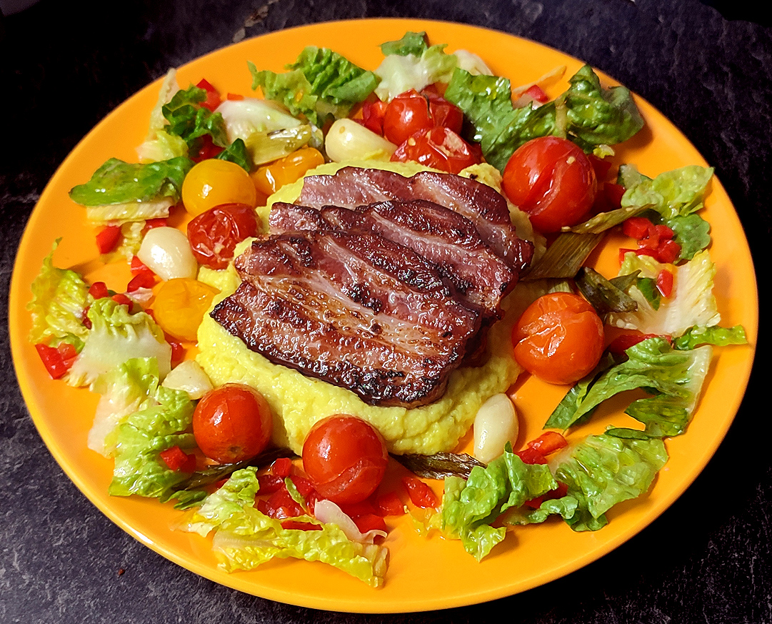 Dazu müssen natürlich Salat und Pü schon parat stehen.