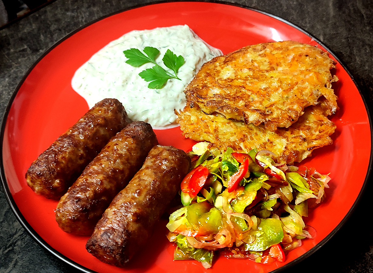 Die Rezepte für Puffer und Salat entnehmt ihr bitte dem Rezept unter diesem. Das muss ich nicht noch einmal abtippen.