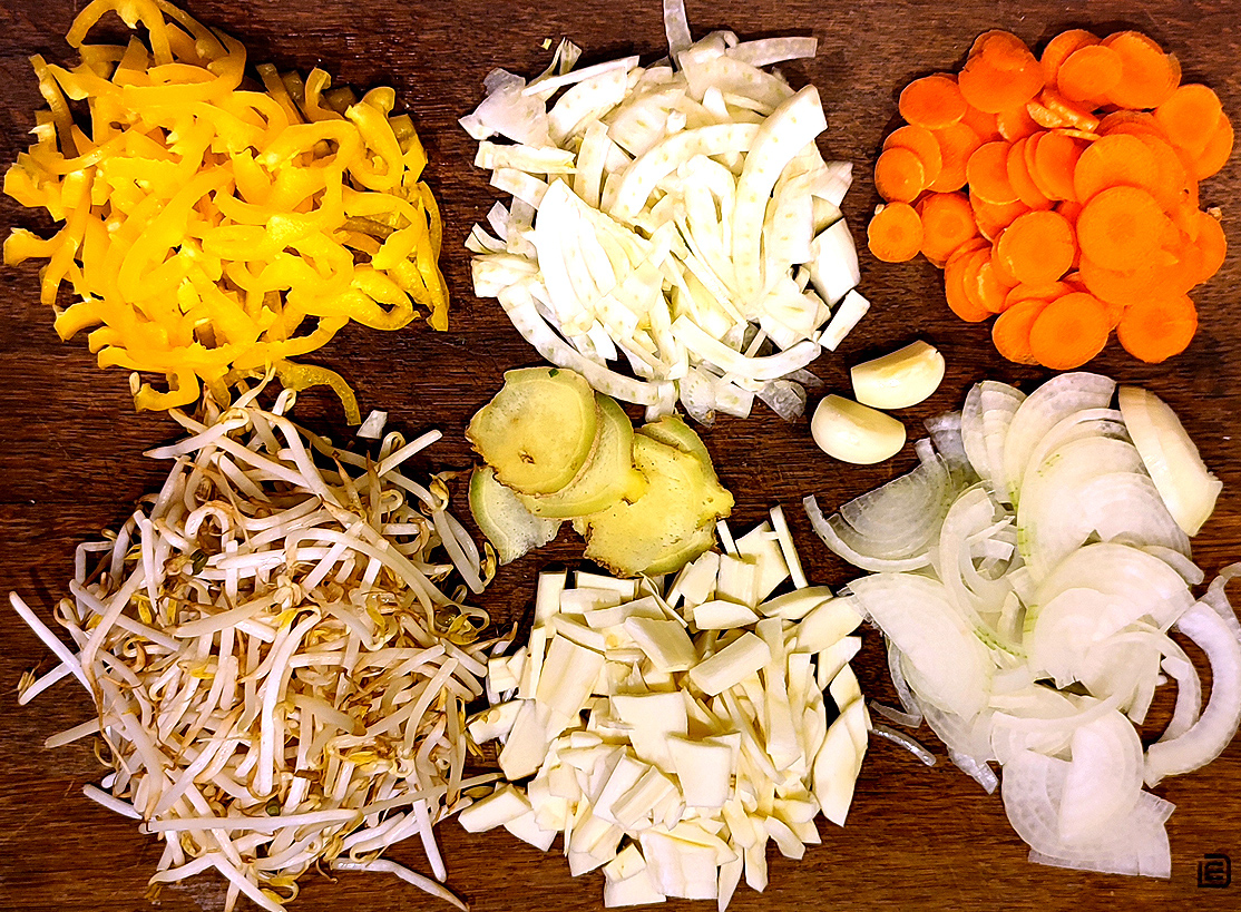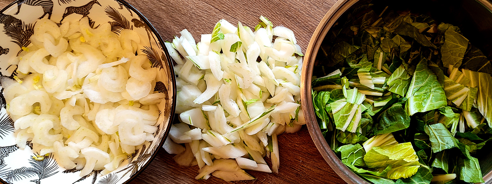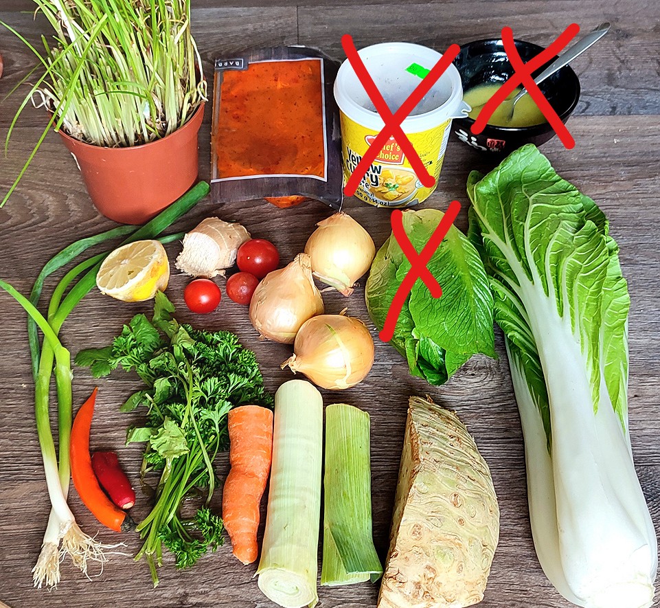 Also erst einmal diverse Lauchreste schnibbeln, und weil die genauso aussehen, gleich vier Frühlingszwiebeln mit.
