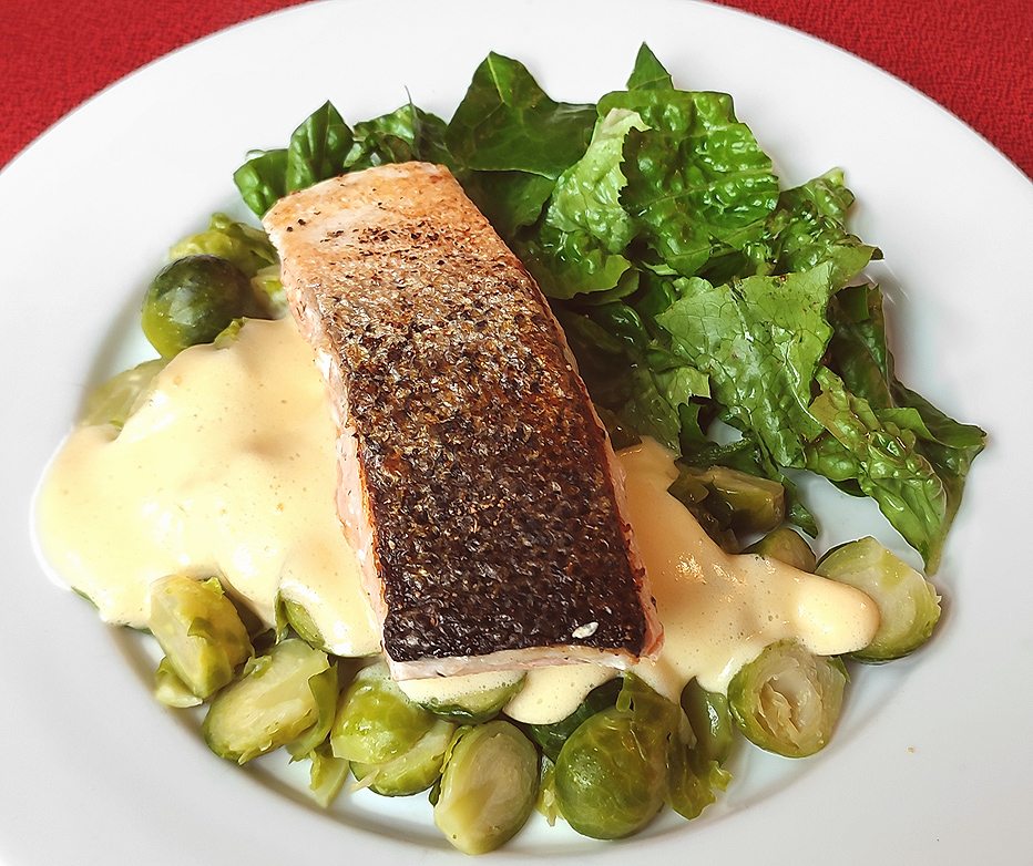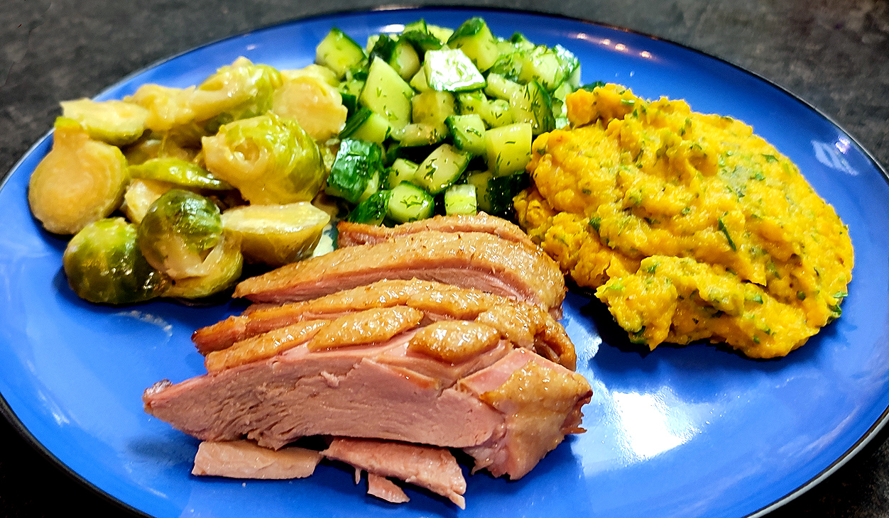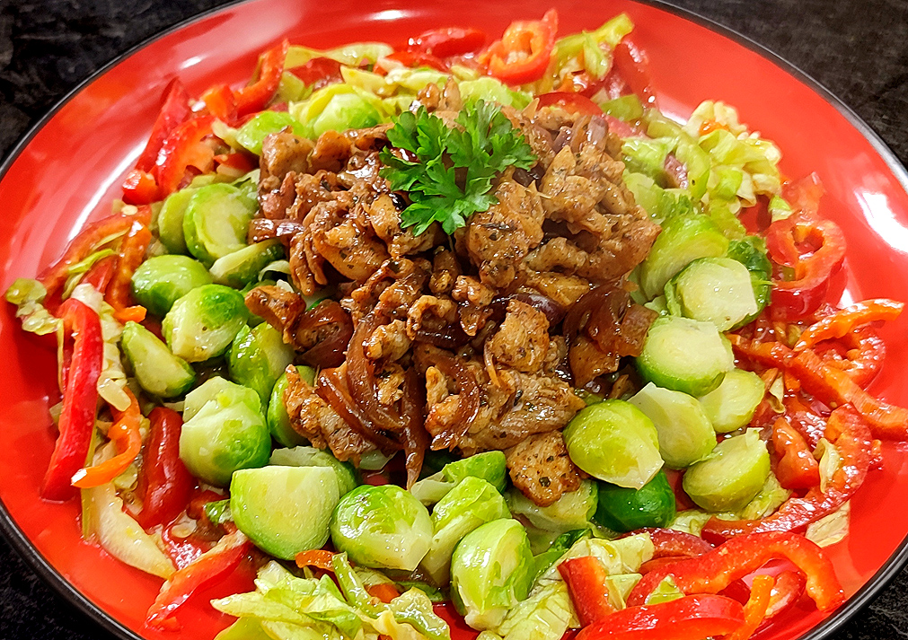 @ Hähnchengeschnetzeltes, Rosenkohl und gemischter Salat