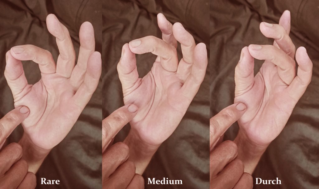Bei 54° Kerntemperatur ist das Steak rare bis medium rare. Das kann man mit einem Bratenthermometer überprüfen oder man erfühlt es:
