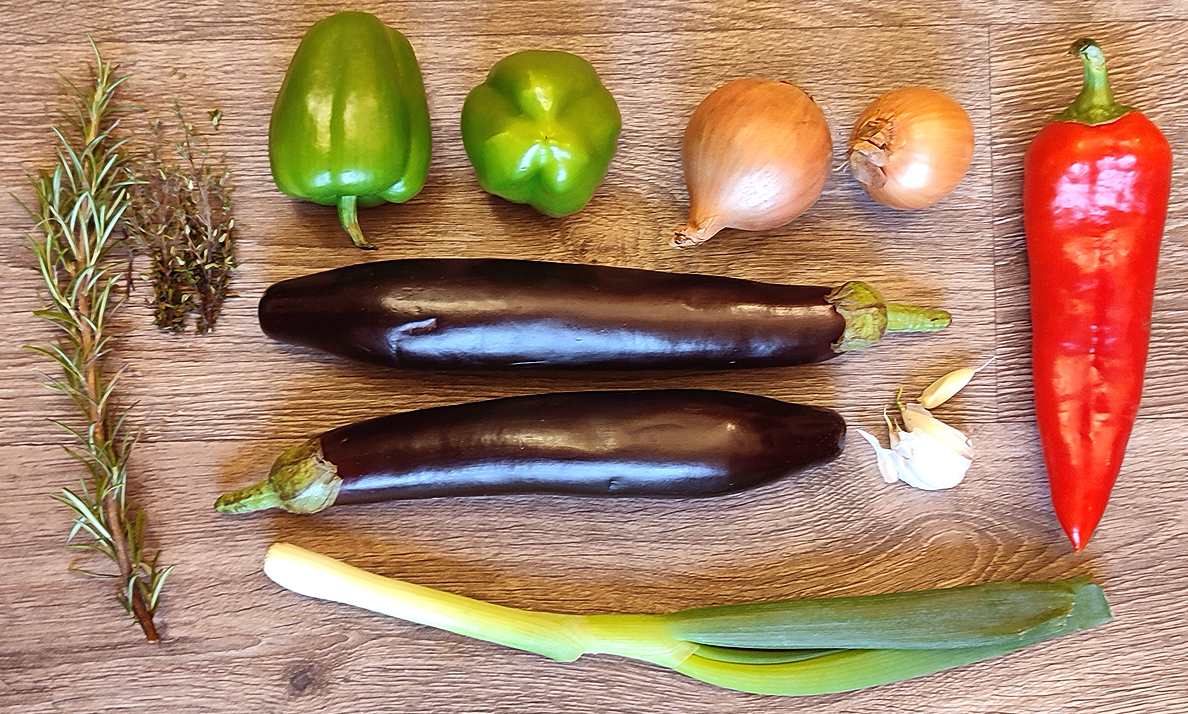 Nach den Regentagen brennt uns endlich die Sonne auf den Pelz, und diese leckere, lauwarme Vorspeise kommt uns gerade zu passe. Die dicke Tomate aus dem russischen Supermarkt brachte mich auf die Idee, aus dem Gemüse statt eines Ratatoilles ein kleines Türmchen zu bauen.