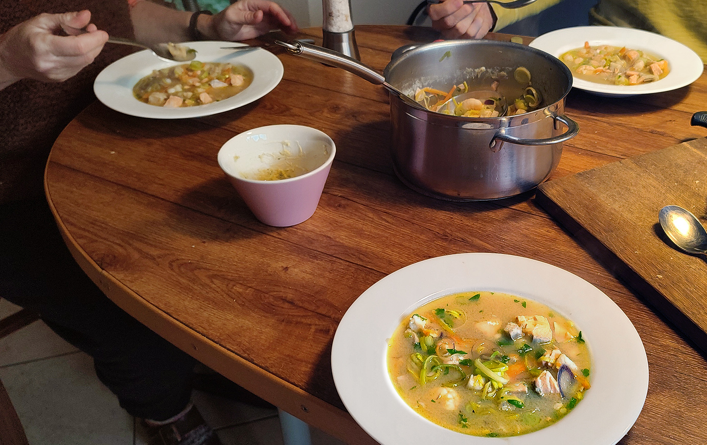 Das Curry ist zum Eintopf geworden, alles schön durchgezogen, dafür aber nicht mehr so frisch würzig wie gestern. Anders zwar, aber dennoch köstlich.